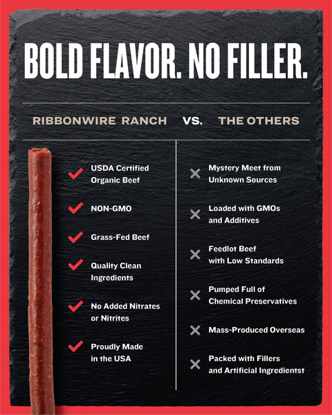 Shop our Ribbonwire Ranch Organic Beef Sticks! Thank You For Your Support.
